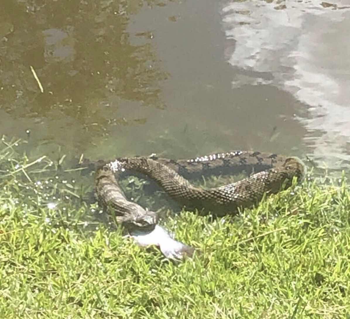 That snakes is eating the fish face first. (No my photo, not my pond but in my neighborhood and that is close enough for me!)